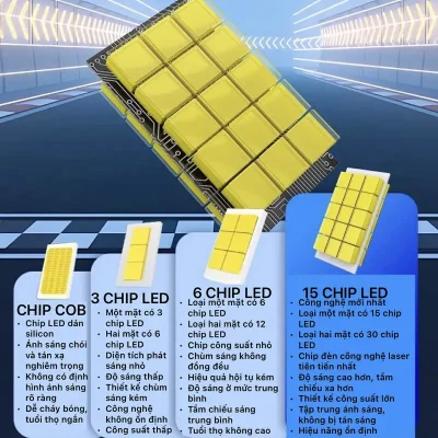 Công nghệ LED 15 chip Lớn cao cấp – Công suất thực > 200W/set